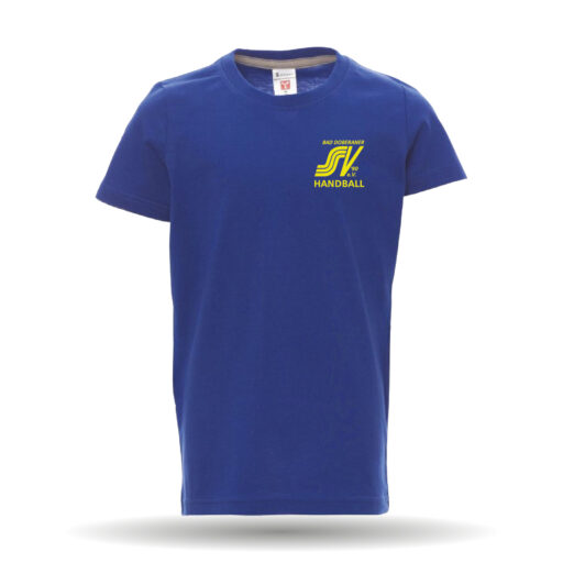 In der Farbe royal und weiß erhältlich. Das T-Shirt besitzt einen Rundhals-Ausschnitt.