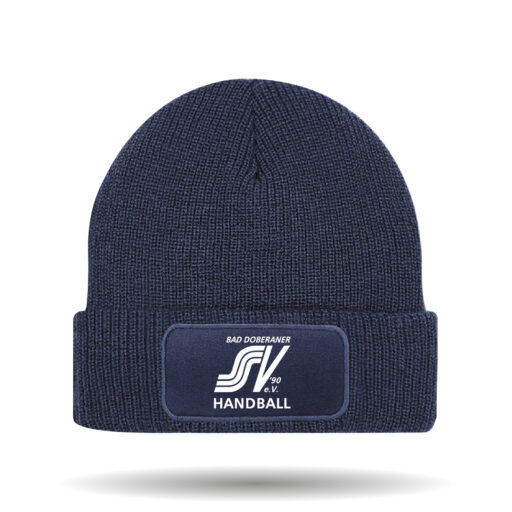 In der Farbe navy erhältlich. Die Mütze besteht aus doppellagigen Strick und geripptem Umschlag.