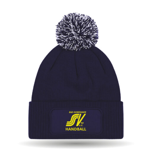 In der Farbe royal und navy erhältlich. Die Mütze besitzt einen 2-farbigen Bommel mit doppellagigen Strick und geripptem Umschlag.