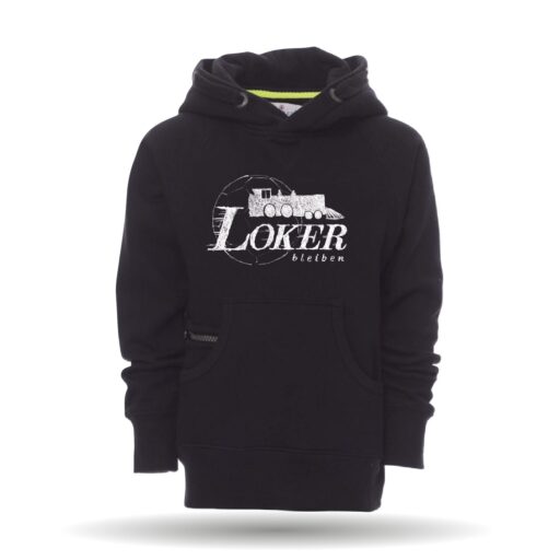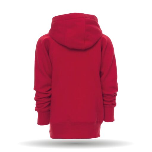 In der Farbe rot, schwarz und grau erhältlich. Der Pullover ist mit einer Känguru Tasche und einer Reißverschlusstasche ausgestattet. Des weiteren besitzt er eine Kapuze mit Kordeln.