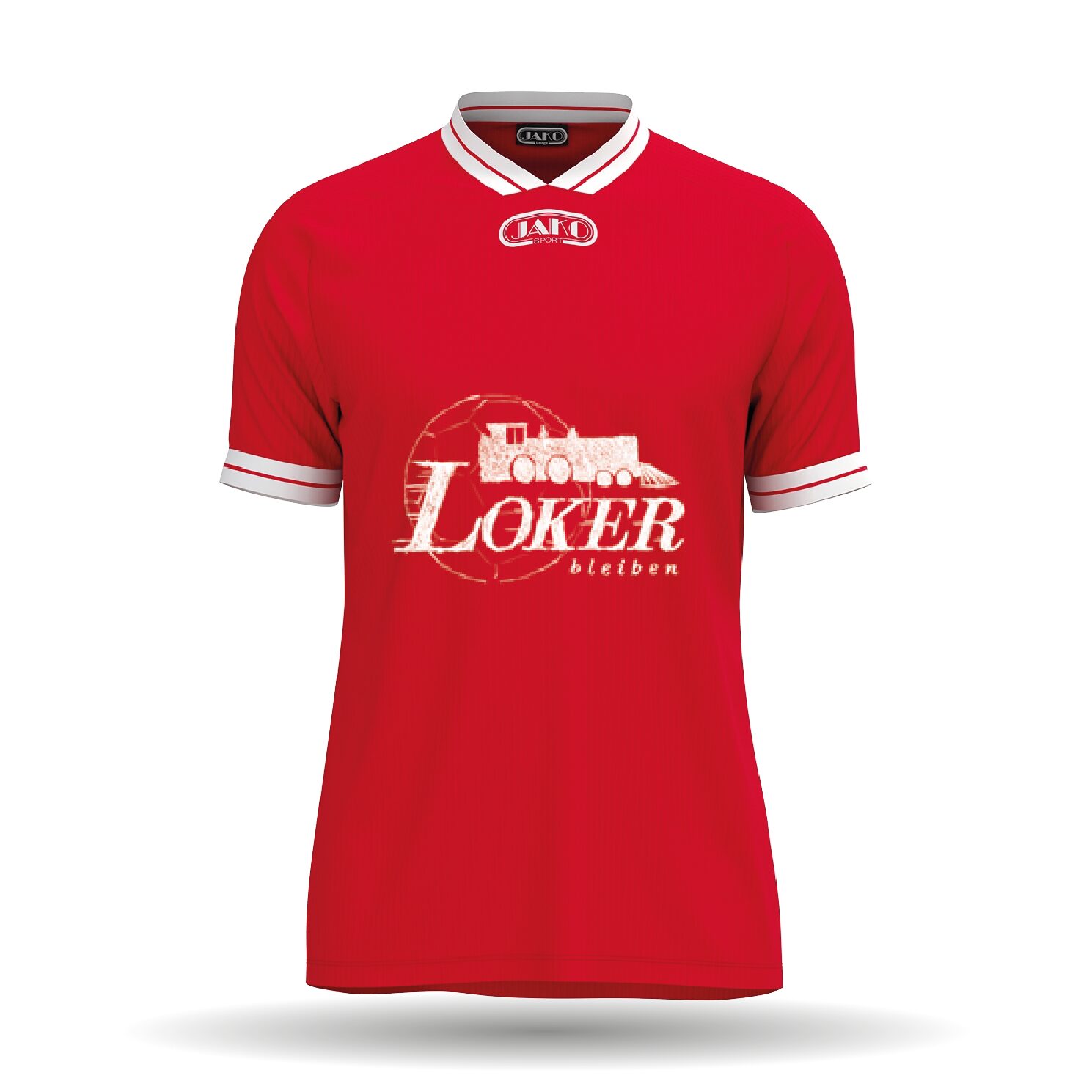 In der Farbe rot erhältlich. Das Trikot besitzt ein Retro-Look mit weißen Abschlüssen an Ärmeln und Kragen.