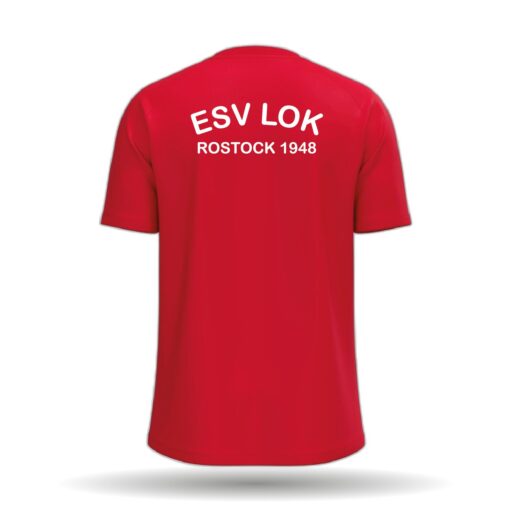 Das Trainings-T-Shirt ist in den Farben rot erhältlich. Es besitzt einen Rundhalskragen.