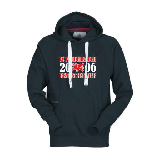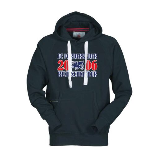 Kapuzenpullover mit einem weißem Kordelzug. Zusätzlich ist dieser mit Metallösen verstärkt. In der Kängurutaschen befindet sich eine kleine Reißverschlusstasche. Die Ärmel und Taille sind mit elastischem Feinripp ausgestattet.