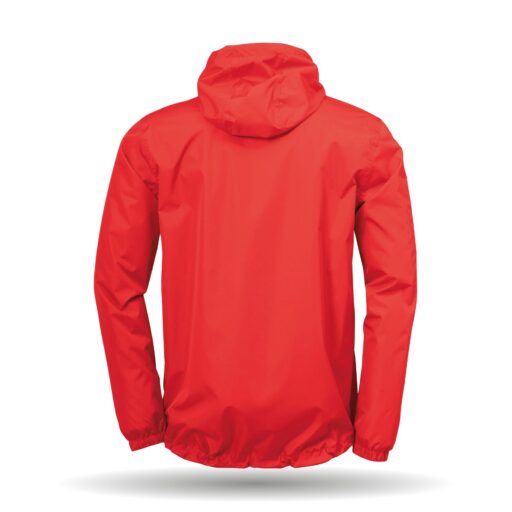 In der Farbe rot erhältlich. Die Regenjacke ist super wasserabweisend mit T-Meshfutter für sehr hohe Atmungsaktivität. Sie hat einen Stehkragen mit integrierter versteckbarer Kapuze, zwei Reißverschlusstaschen und eine Garage am Reißverschluss.