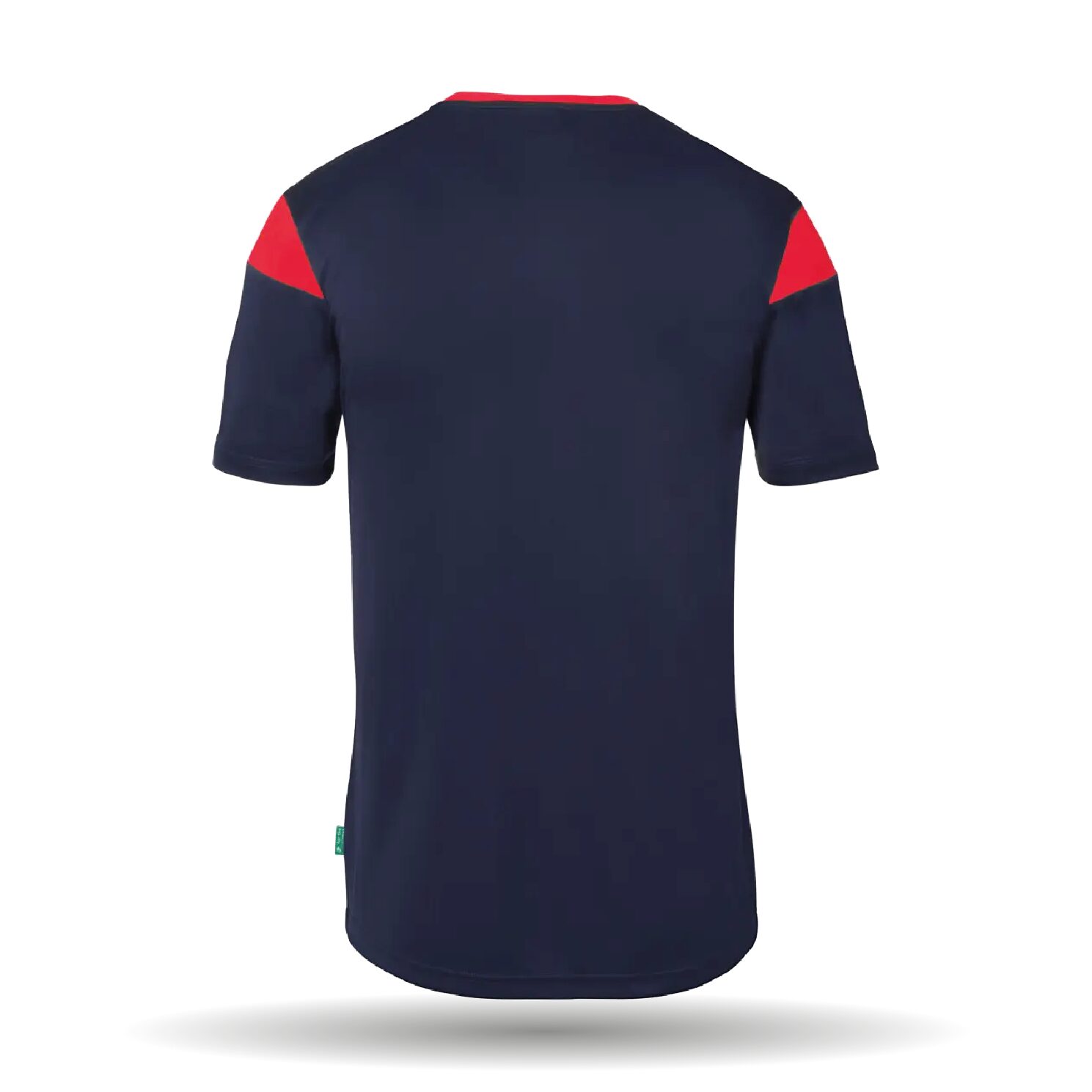 In der Farbe navy/rot erhältlich. Das Trikot besitzt einen Rundhalsausschnitt.