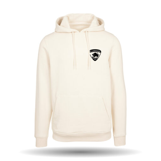 In der Farbe schwarz, sand, grau, charcoal erhältlich. Der Pullover hat eine länger geschnittene Passform. Er besitzt eine gefütterte Kapuze sowie eine aufliegende Kängurutasche mit Taschenöffnungen. Am Ausschnitt befindet sich ein Nackenband.