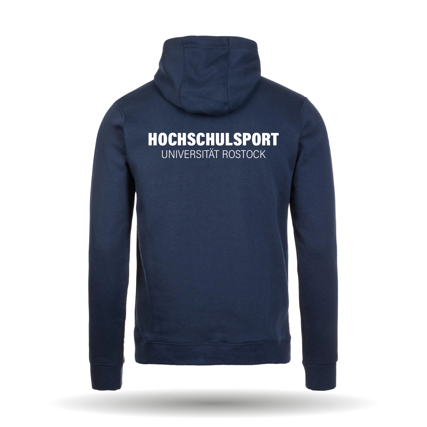 In der Farbe navy erhältlich. Der Hoodie besitzt eine Kapuze mit einer Kordel und eine Känguru-Tasche.
