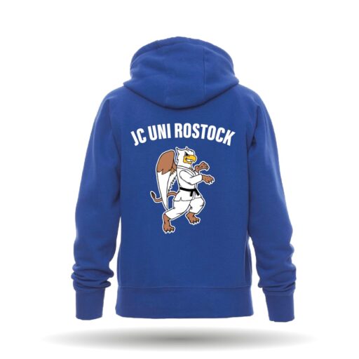 In der Farbe royal erhältlich. Der Pullover ist mit einer Känguru Tasche und einer Reißverschlusstasche ausgestattet. Des weiteren besitzt er eine Kapuze mit Kordeln.