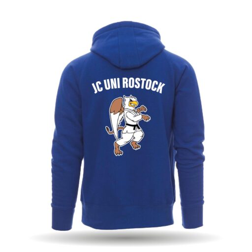 In der Farbe royal erhältlich. Der Pullover ist mit einer Känguru Tasche und einer Reißverschlusstasche ausgestattet. Des weiteren besitzt er eine Kapuze mit Kordeln.