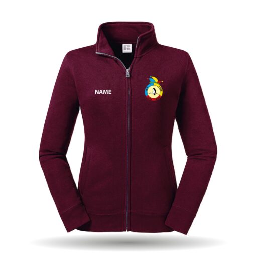 In der Farbe schwarz, navy und burgundy erhältlich. Die Sweatjacke hat eine länger geschnittene Passform.