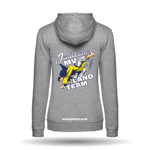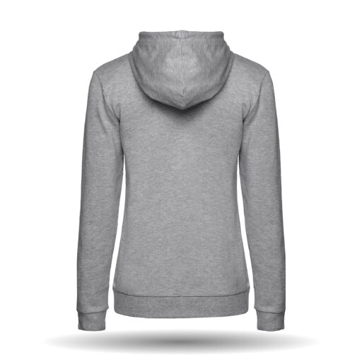 In der Farbe grau erhältlich. Der Hoodie besitzt einen Rundhalsausschnitt und eine Kängurutasche. Des weiteren hat er elastische Feinripp an den Ärmeln und der Taille.