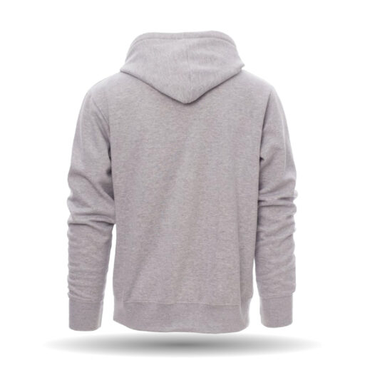 In der Farbe grau erhältlich. Der Hoodie besitzt einen Rundhalsausschnitt und eine Kängurutasche. Des weiteren hat er elastische Feinripp an den Ärmeln und der Taille.