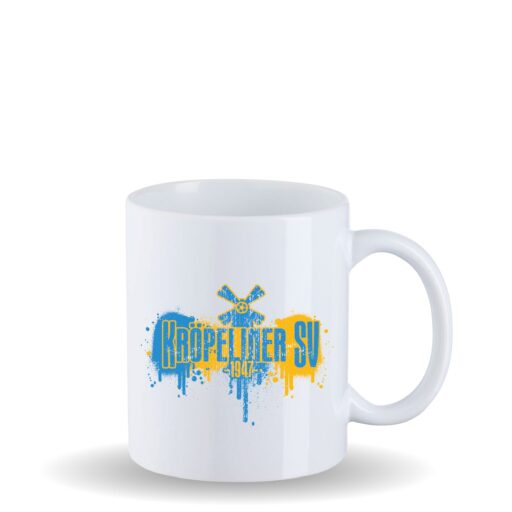 In der Farbe weiß erhältlich. Die Tasse ist spülmaschinenfest.