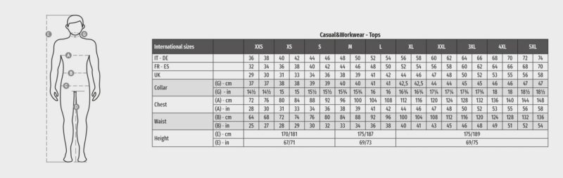 | Konfektionsgröße | XS, S, M, L, XL, XXL, 3XL, 4XL, 5XL |