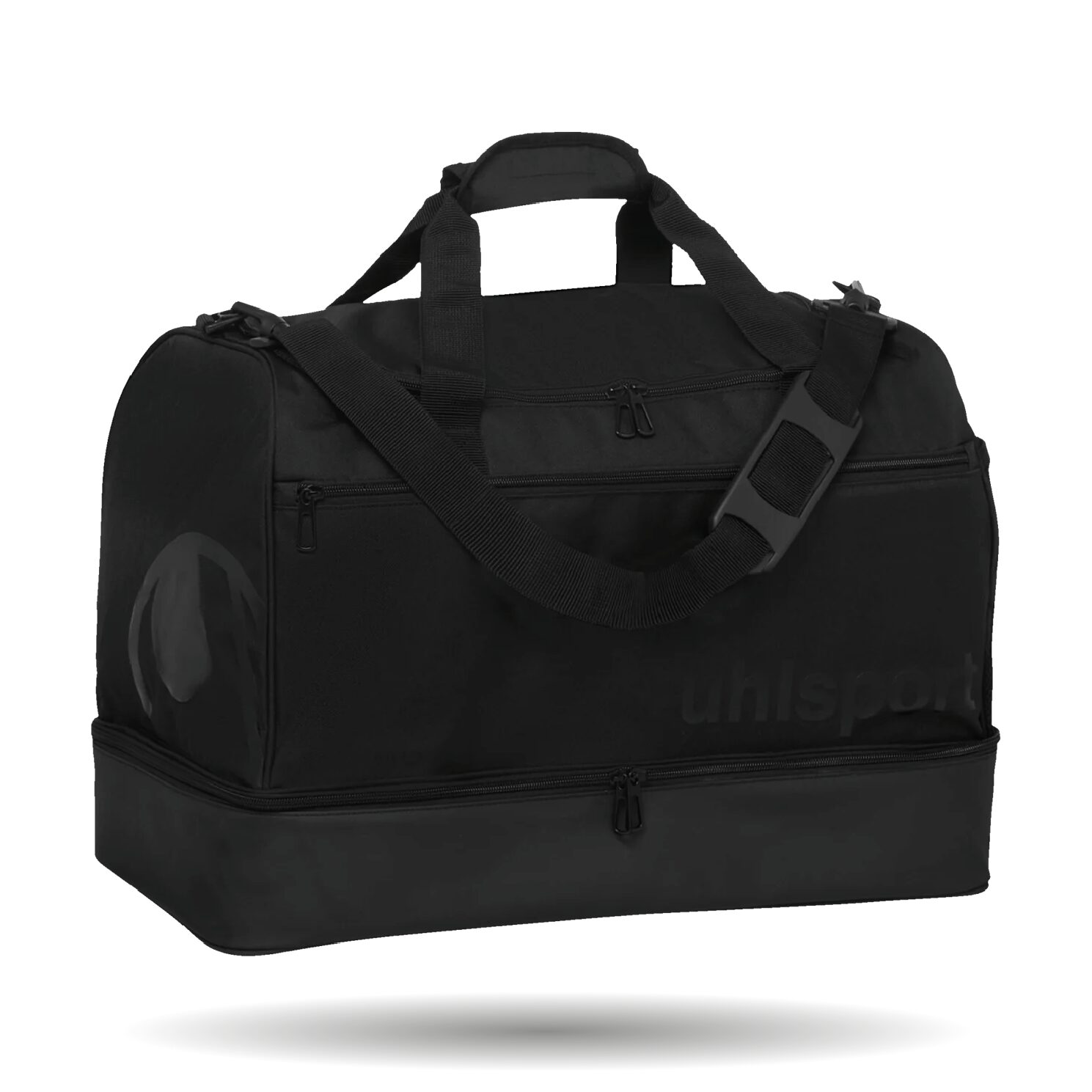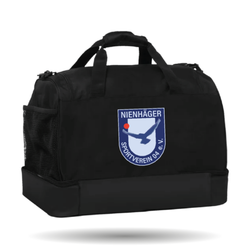 In der Farbe schwarz erhältlich. Die Sporttasche hat einen verstellbaren Schultergurt und einen Tragegriff. Zudem hat sie ein Hauptfach mit u-förmiger Öffnung und ein Bodenfach, welches verstärkt ist.