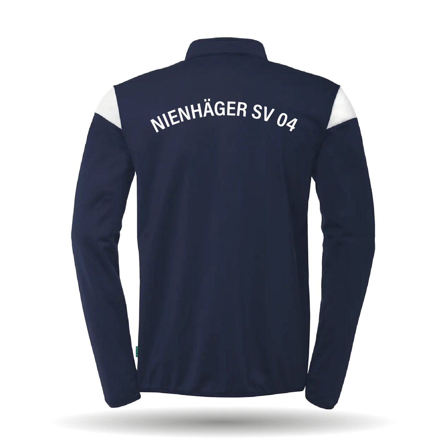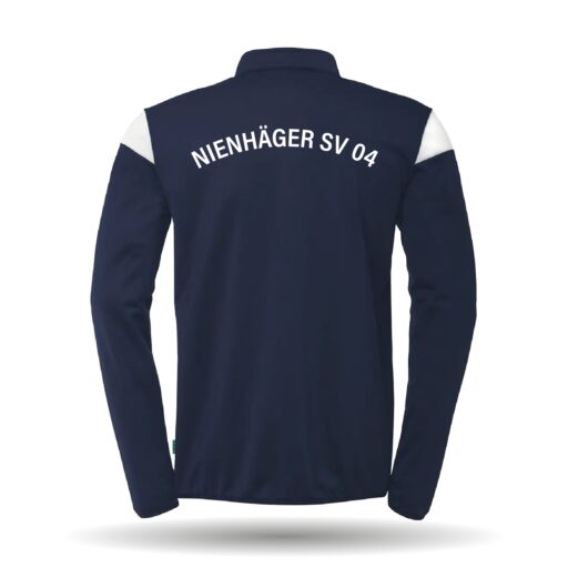Diese Trainingsjacke ist in der Farbe navy erhältlich. Sie besitzt einen Stehkragen, sowie Seitentaschen mit Reißverschluss.