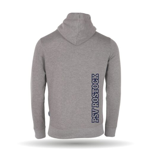 In der Farbe grau erhältlich. Der Hoodie besitzt eine Kapuze mit Kordeln. Außerdem ist er mit einer Kängurutasche.