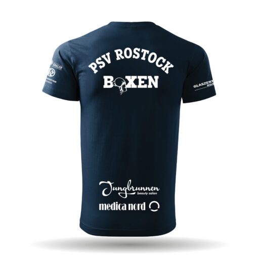 In der Farbe navy erhältlich. Das T-Shirt besitzt einen Rundhals-Ausschnitt.