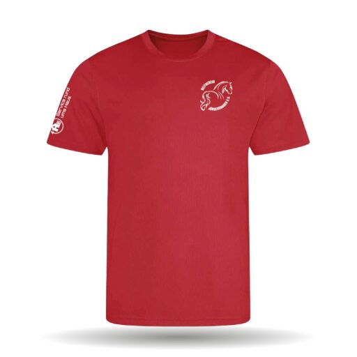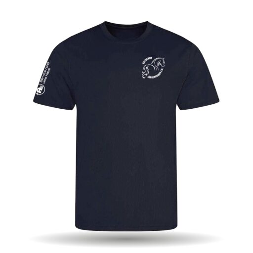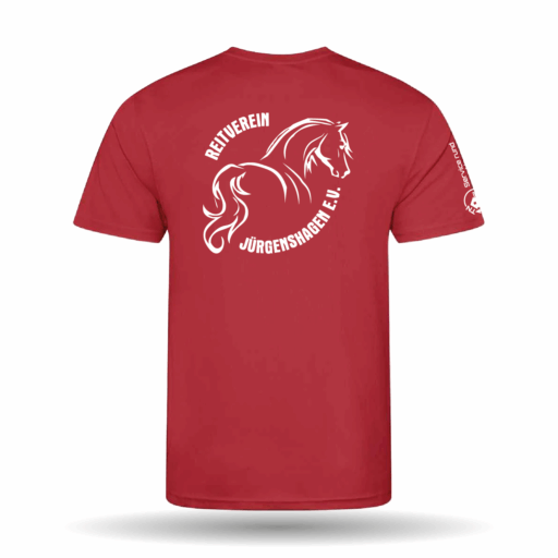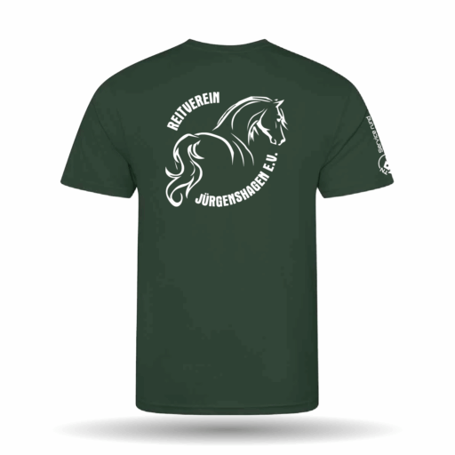 In der Farbe grün, schwarz, navy und rot erhältlich. Das T-Shirt besitzt einen Rundhals-Kragen und Seitennähte.