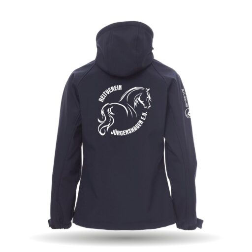In der Farbe navy erhältlich. Die Softshelljacke ist mit einer Kapuze mit Kordelzug sowie einem durchgängigem Reißverschluss ausgestattet.
