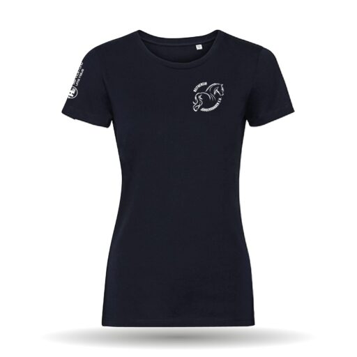 In der Farbe grün, schwarz, navy und rot erhältlich. Das T-Shirt besitzt einen taillierten Schnitt und Rundhals-Ausschnitt. Außerdem ist es mit einem Feinripp-Kragen ausgestattet.