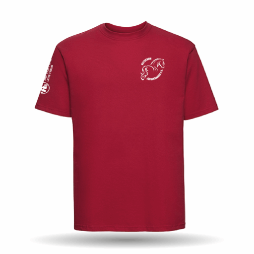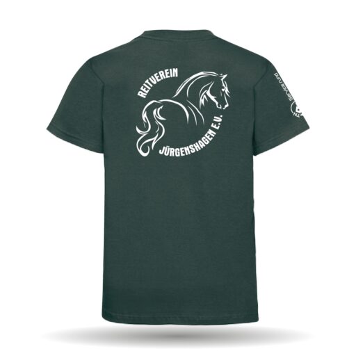 In der Farbe grün, schwarz, navy und rot erhältlich. Das T-Shirt besitzt einen geraden Schnitt sowie einen Rundhals-Kragen.