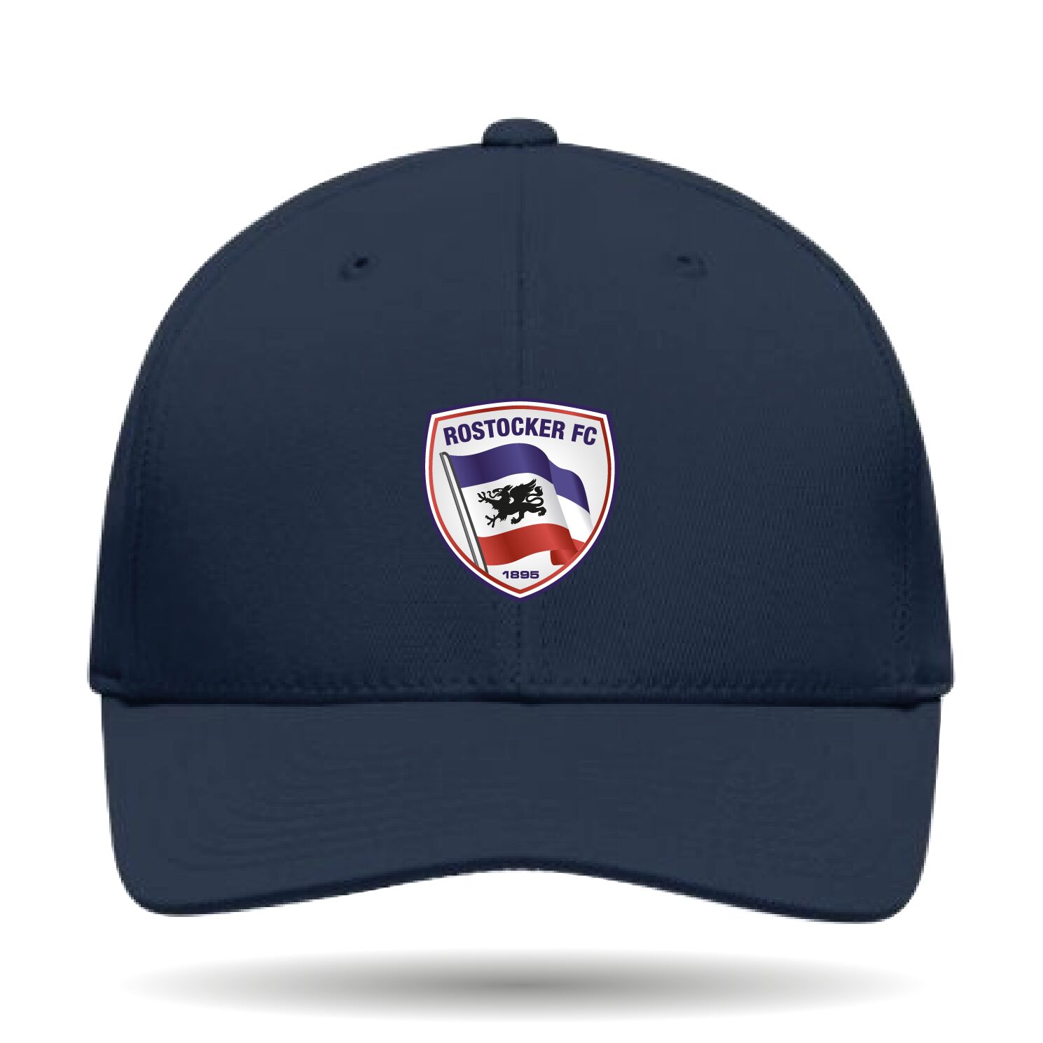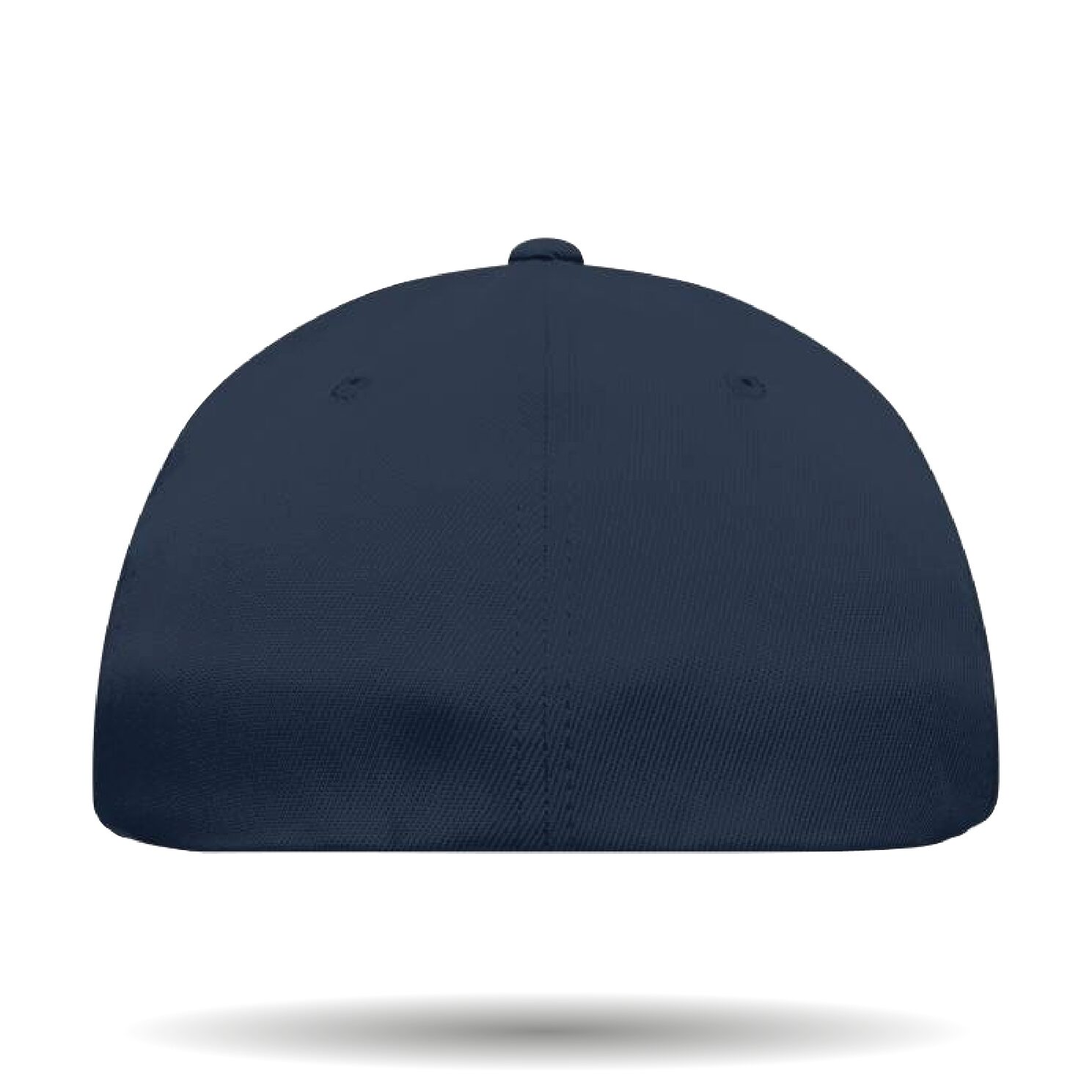 Die Basecap ist in der Farbe navy erhältlich. Diese ist eine 6-Panel-Mütze mit einer komplett verschlossenen Rückseite.