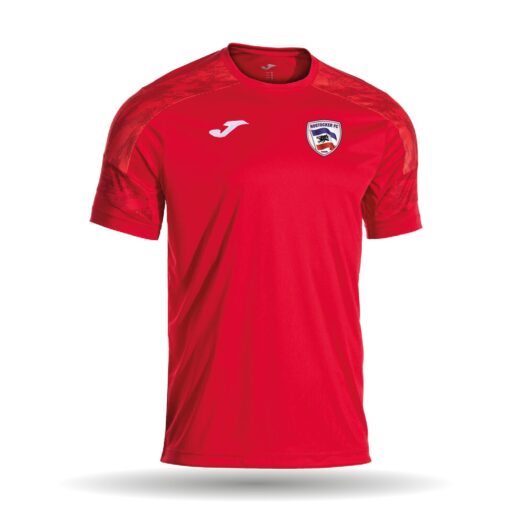 Das Trikot ist in der Farbe rot erhältlich. Es besitzt kurze Ärmel sowie einen Rundhalskragen. Außerdem hat es einen regulären Schnitt.