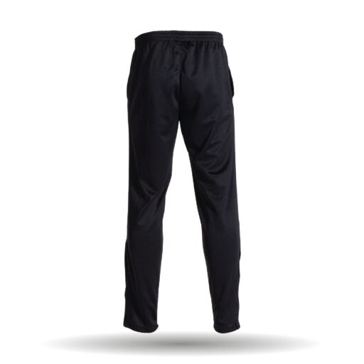 Die Trainingshose ist in der Farbe schwarz erhältlich. Sie ist mit einem elastischen Hosenbung ausgestattet. Außerdem besitzt sie Reißverschlüsse an den Seitentaschen, sowie an den Hosenbeinen.