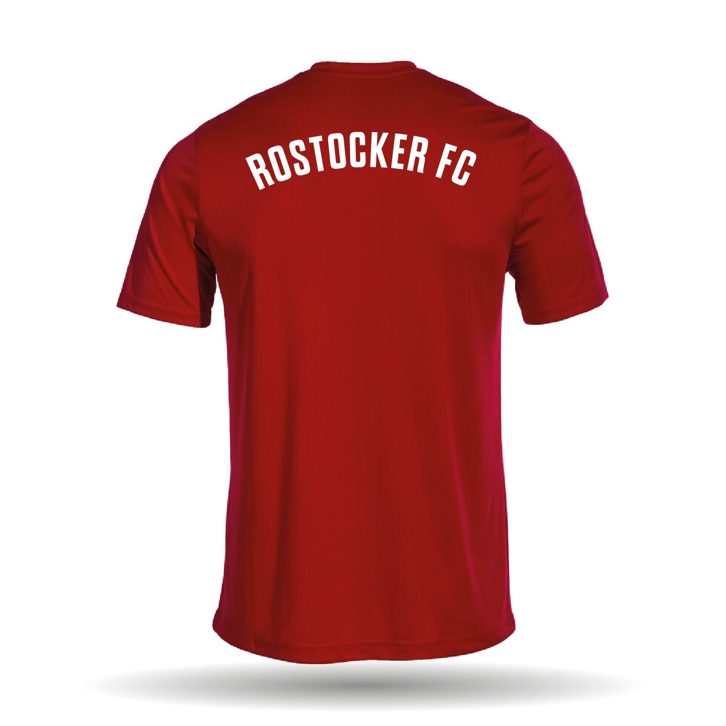Das Trainingsshirt ist in der Farbe rot erhältlich. Es besitzt einen Rundhalskragen und einen regulären Schnitt.