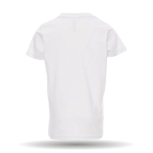 Das T-Shirt ist in der Farbe weiß erhältlich. Das T-Shirt besitzt einen Rundhalskragen und ist mit einem Nackenband ausgestattet.