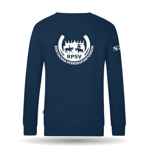 In der Farbe navy erhältlich. Der Sweatshirt ist mit einem Rundhals-Kragen ausgestattet. Außerdem besitzt dieser verstärkte Schulternähte.