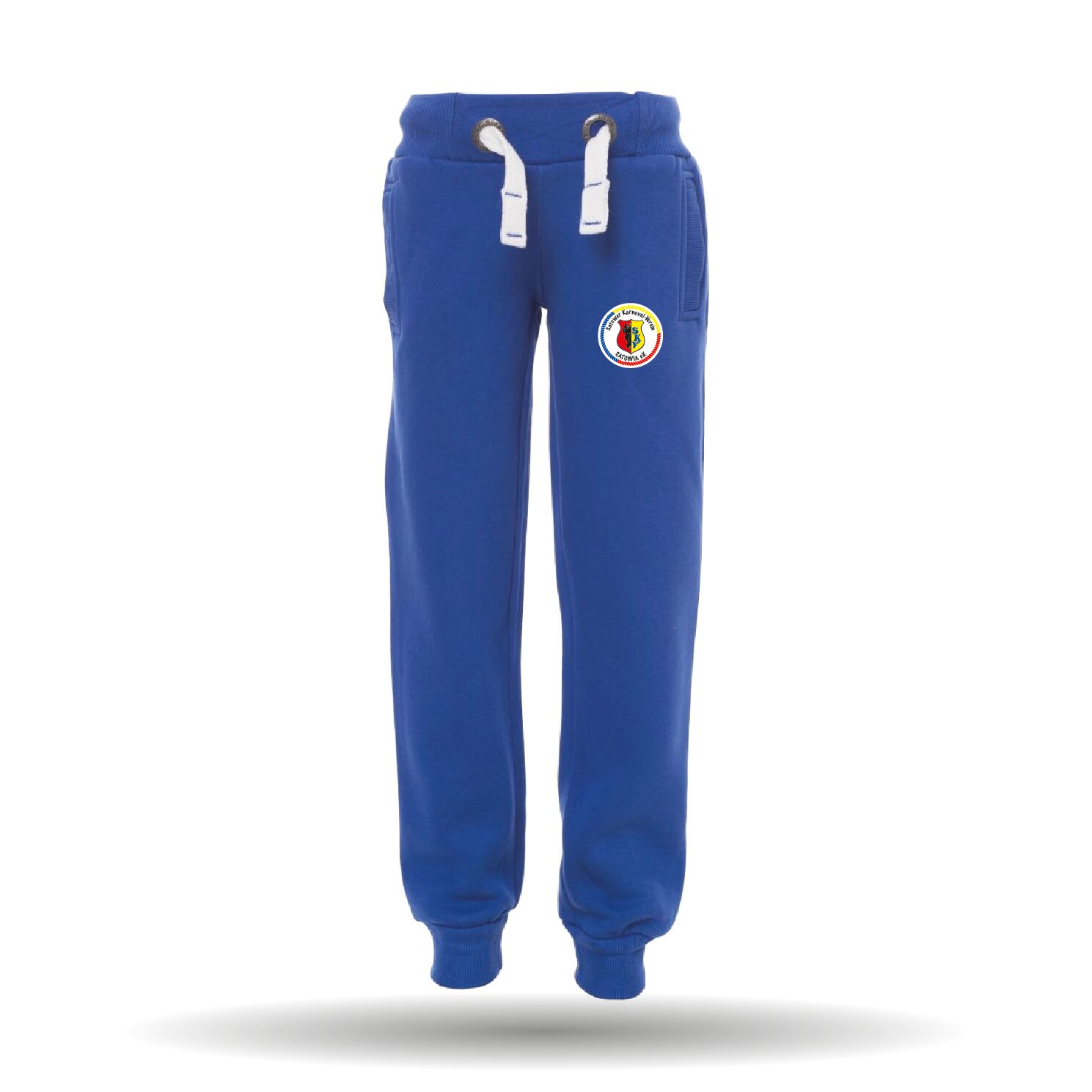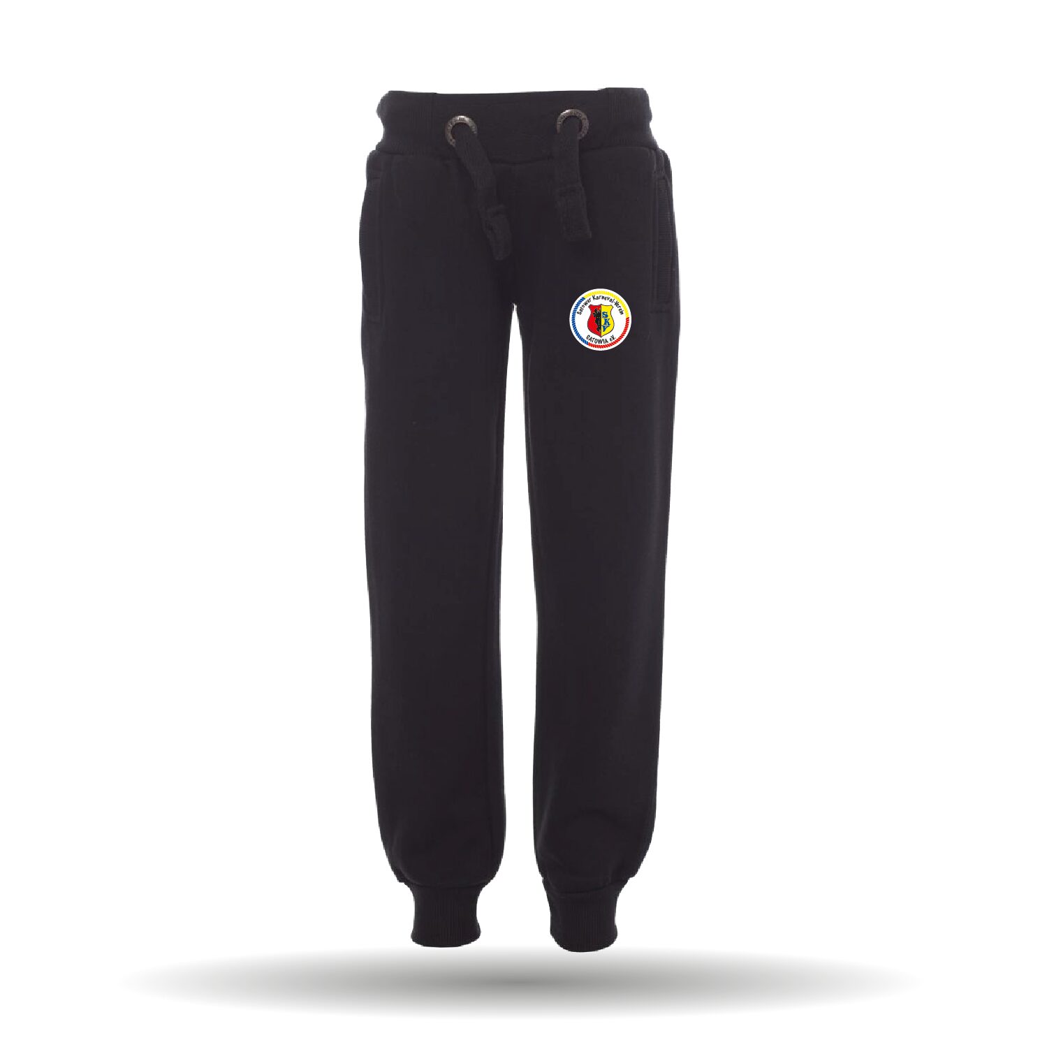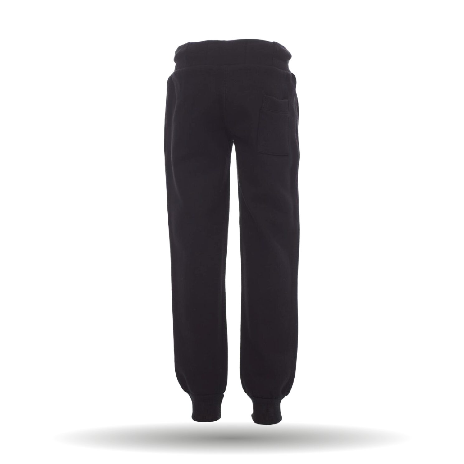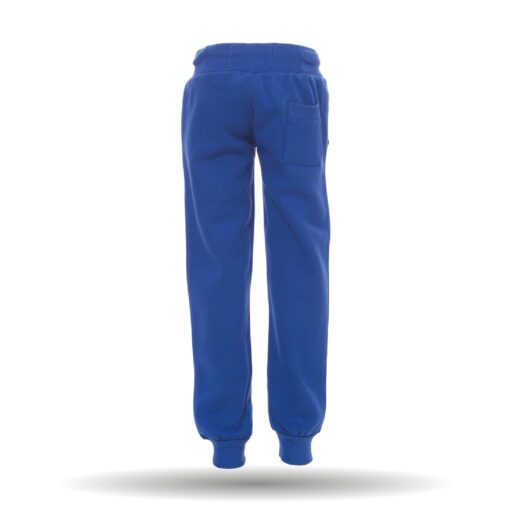 Die Jogginghose besitzt einen elastischen Bund mit Kordeln und hat Rippabschlüsse an den Beinenden.