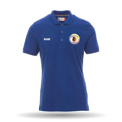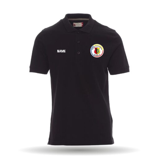 Das Poloshirt ist in der Farbe schwarz, royal erhältlich. Es besitzt Feinripp an Ärmeln und Kragen. Außerdem ist es mit Seitenschlitzen ausgestattet.