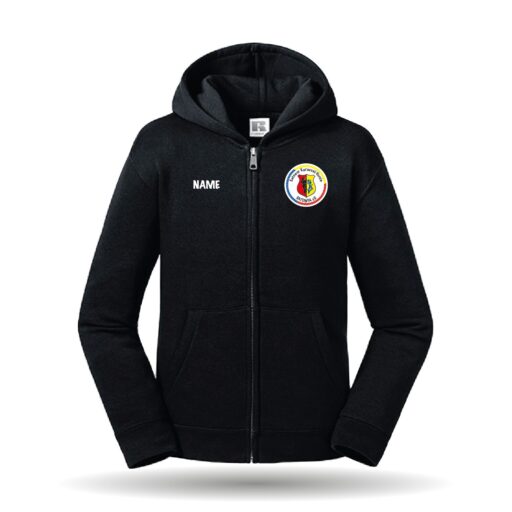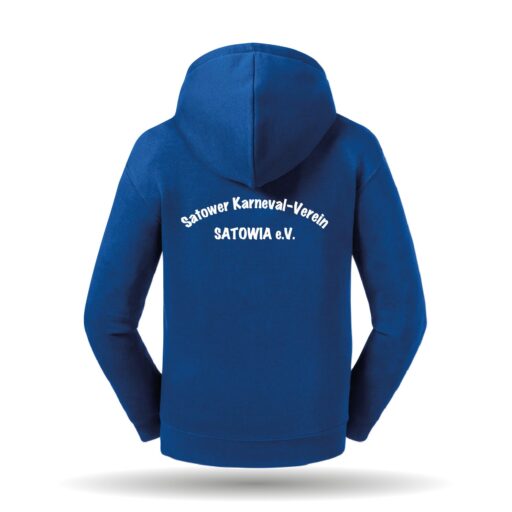 In der Farbe royal und schwarz erhältlich. Die Sweatjacke mit Kapuze hat eine länger geschnittene Passform. Sie besitzt eine gefütterte Kapuze sowie 2 Taschen. Am Ausschnitt befindet sich ein Nackenband.