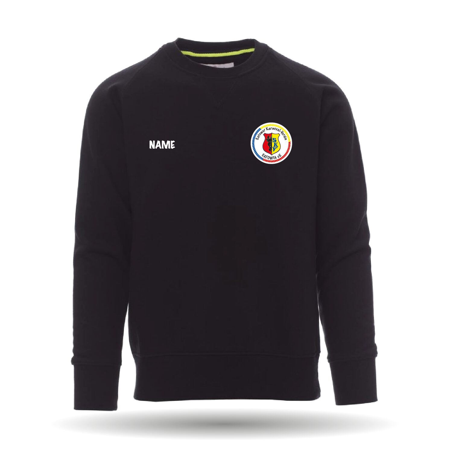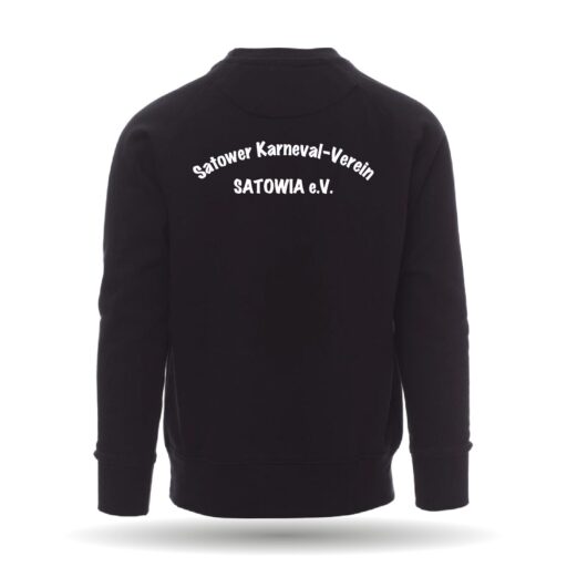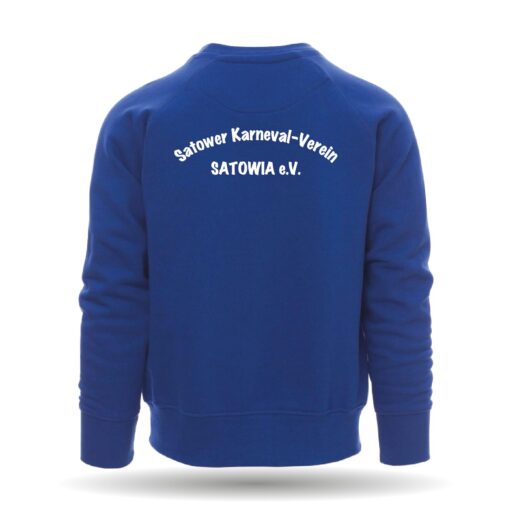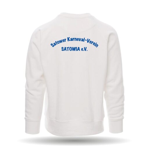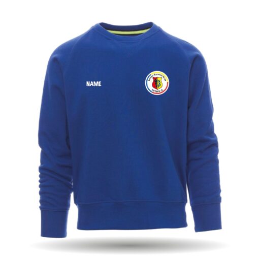 Das Sweatshirt ist mit einem Rundhals-Kragen und Rippabschlüssen an Saum und Ärmel.