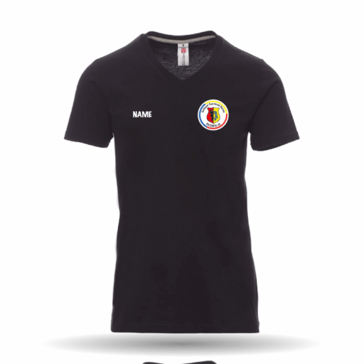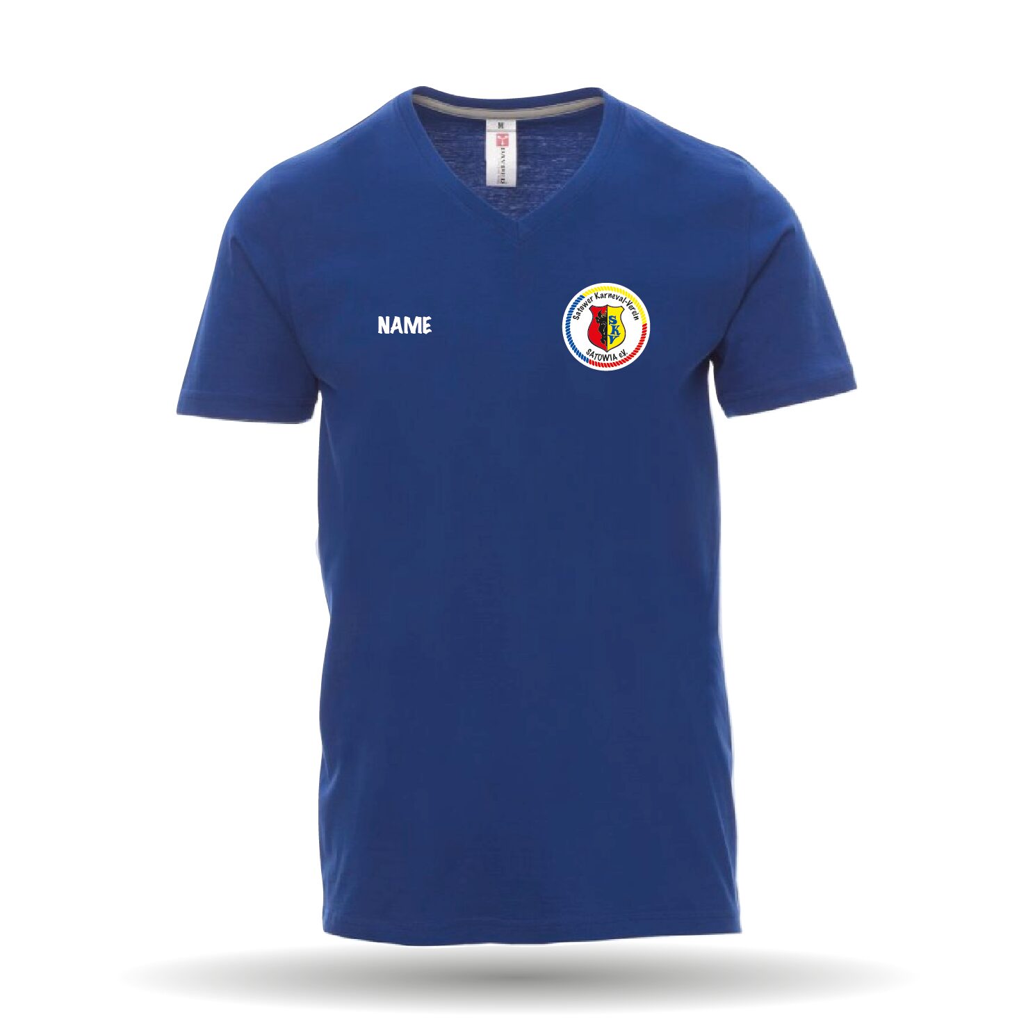 In der Farbe royal erhältlich. Das T-Shirt besitzt ein V-Ausschnitt. Außerdem ist es mit einem Feinripp-Kragen ausgestattet.