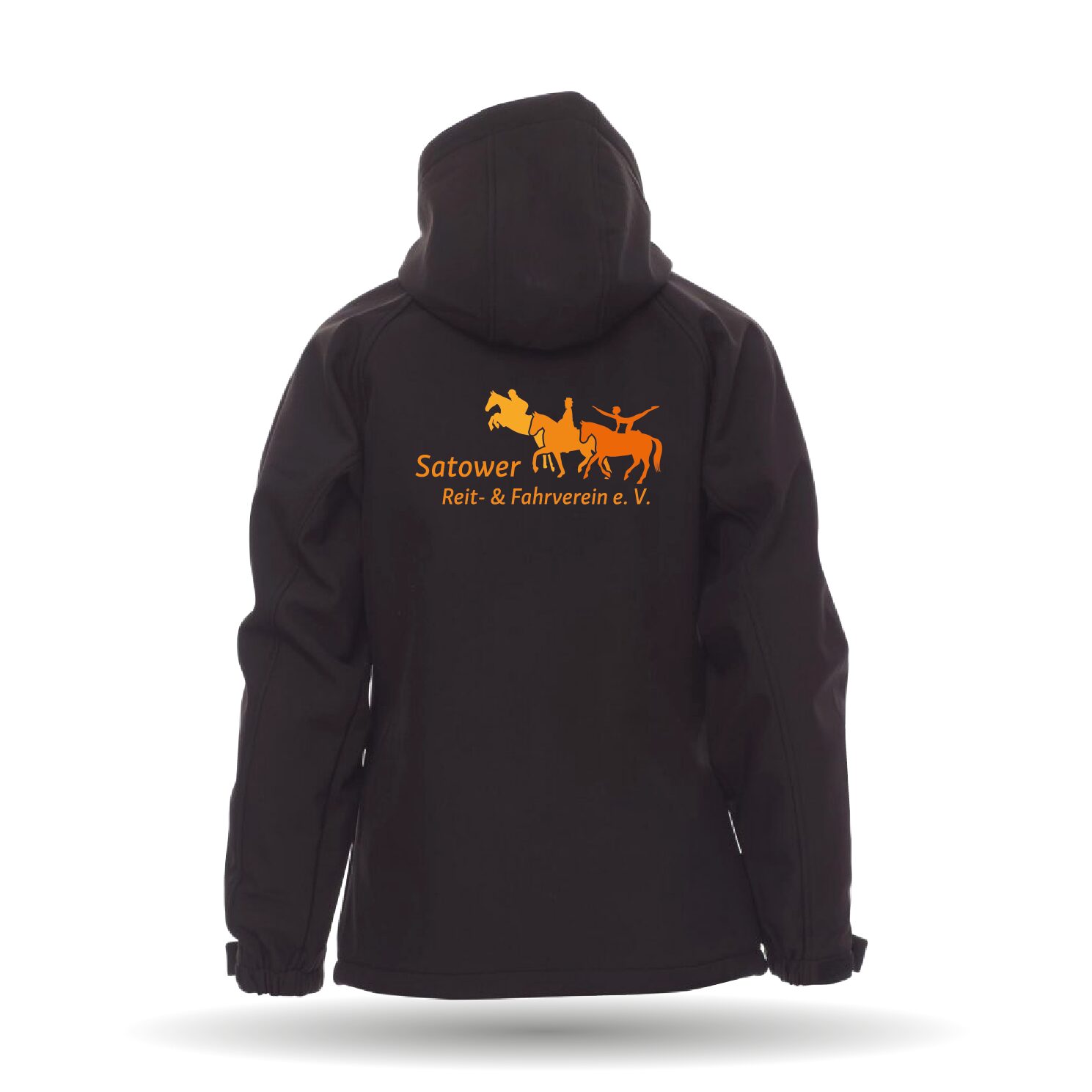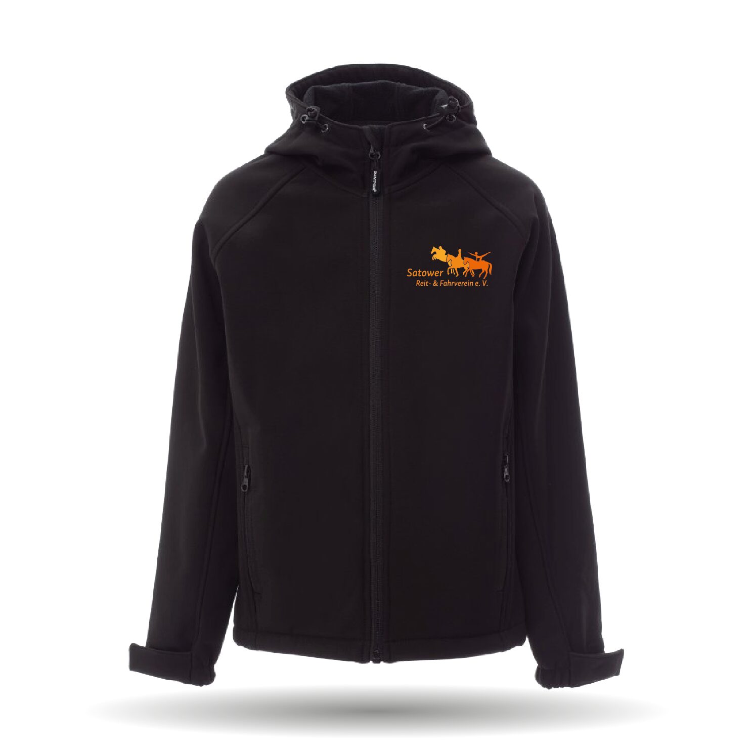 Die Softshelljacke ist mit einem Reißverschluss und Taschen ausgestattet. Außerdem besitzt sie eine verstellbarer Kapuze mit Kordelzug und Klettverschlüsse an den Ärmeln.