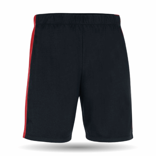 In der Farbe schwarz-rot erhältlich. Die kurze Hose besitzt einen elastischen Bund an der Hüfte.