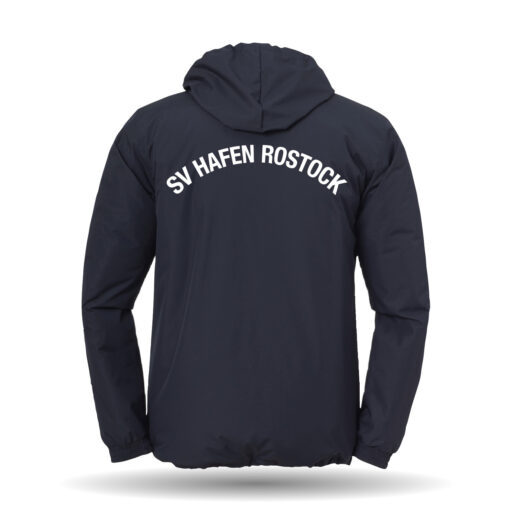 In der Farbe navy erhältlich. Die Coachjacke ist wattiert und hat ein wasserabweisendes Coating. Sie hat einen Stehkragen mit integrierter verstaubarer Kapuze, eine flauschige Innenseite im Kragen und eine Garage am Reißverschluss.