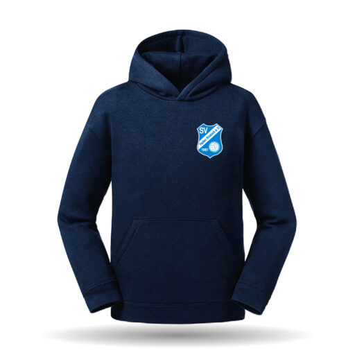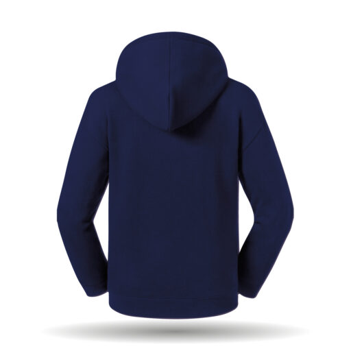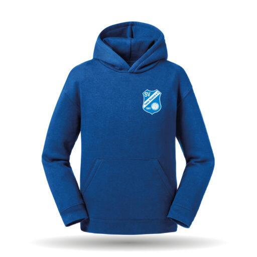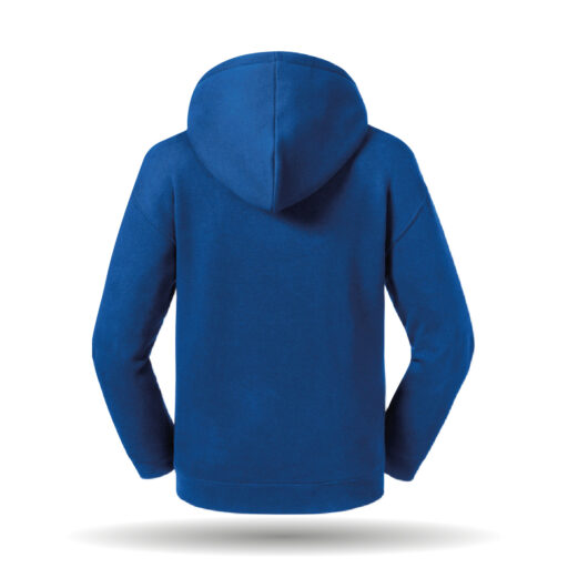 In der Farbe navy und royal erhältlich. Der Pullover hat eine länger geschnittene Passform. Er besitzt eine gefütterte Kapuze sowie eine aufliegende Kängurutasche mit Taschenöffnungen. Am Ausschnitt befindet sich ein Nackenband.