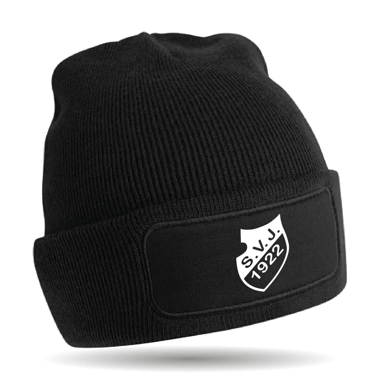 Wintermütze mit einem SV Jürgenshagen Logo. In der Farbe schwarz erhältlich. Die Mütze besteht aus doppellagigen Strick und geripptem Umschlag.