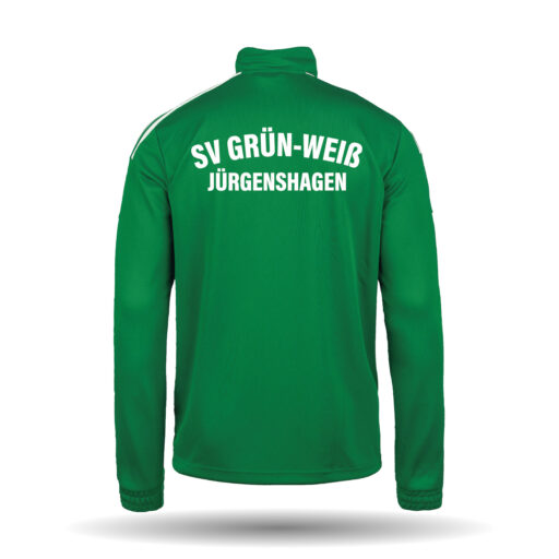 Der Zip-Top ist in der Farbe grün erhältlich. Sie besitzt ein Stehkragen und ist schmal geschnitten.
