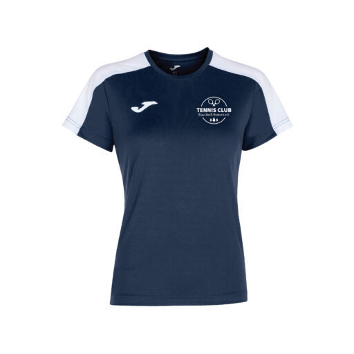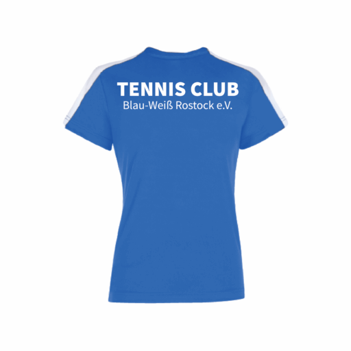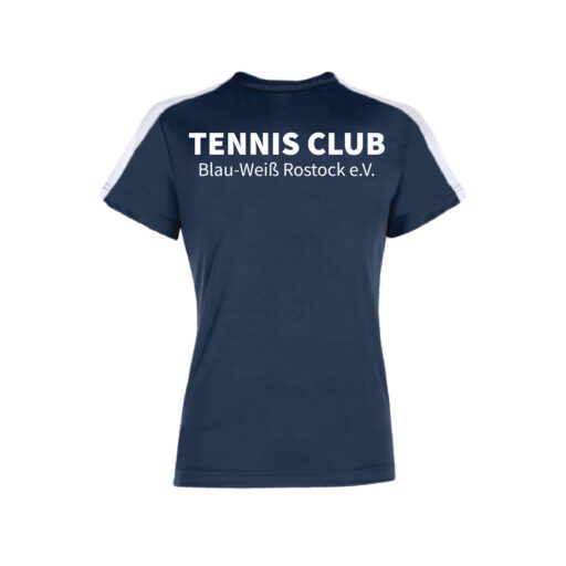 In der Farbe navy/weiß, schwarz/weiß, weiß, royal/weiß und skyblue/navy. Das T-Shirt ist mit einem Rundhals-Kragen ausgestattet.