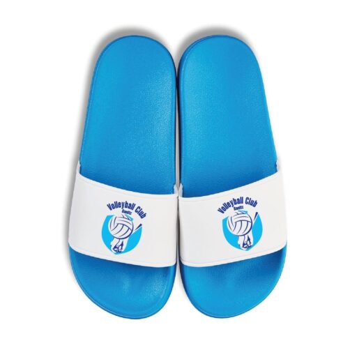 Zweifarbige Badelatschen mit einem VC Sanitz Logo. In der Farbe schwarz /schwarz, schwarz / weiß und hellblau / weiß erhältlich.