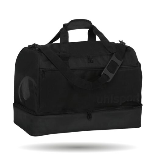 In der Farbe schwarz erhältlich. Die Sporttasche hat einen verstellbaren Schultergurt und einen Tragegriff. Zudem hat sie ein Hauptfach mit u-förmiger Öffnung und ein Bodenfach, welches verstärkt ist.