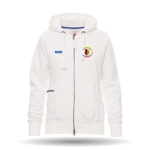 In der Farbe royal erhältlich. Die Sweatjacke ist mit einer Extra-Reißverschlusstasche ausgestattet. Des weiteren besitzt er eine Kapuze mit Kordeln.