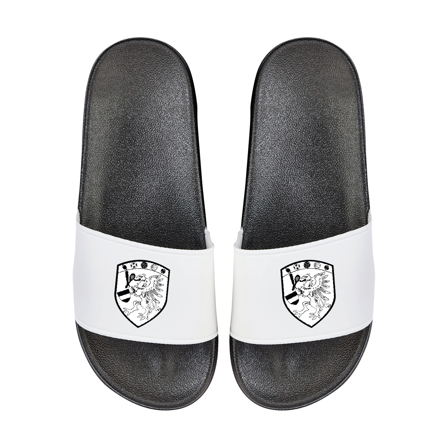 Zweifarbige Badelatschen mit einem Spowi Rostock Logo. In der Farbe schwarz / weiß erhältlich.