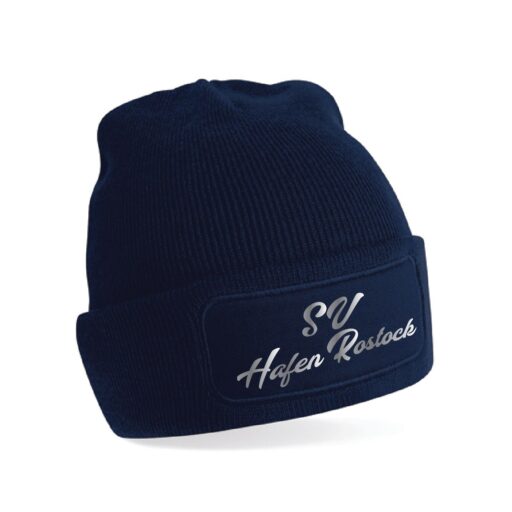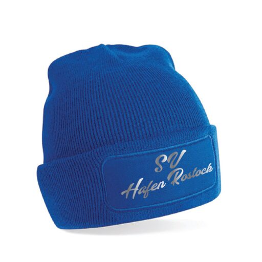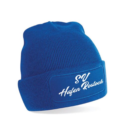 Wintermütze mit einem SV Hafen Rostock Schriftzug. In der Farbe royal und navy erhältlich. Die Mütze besteht aus doppellagigen Strick und geripptem Umschlag.