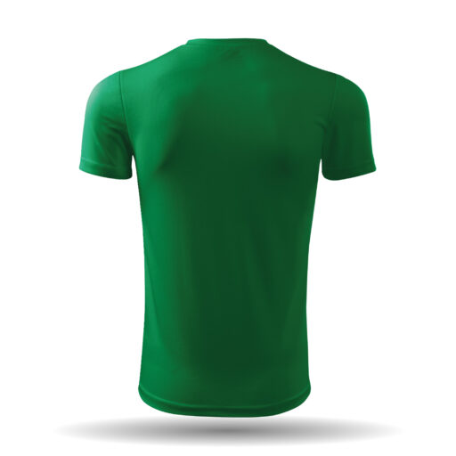 In der Farbe grün erhältlich. Das T-Shirt besitzt mit einem Band verstärkte Schulternähte. Des weiteren besitzt es Seitennähte.